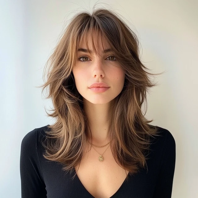2. Shoulder-Grazing Layers with Curtain Bangs